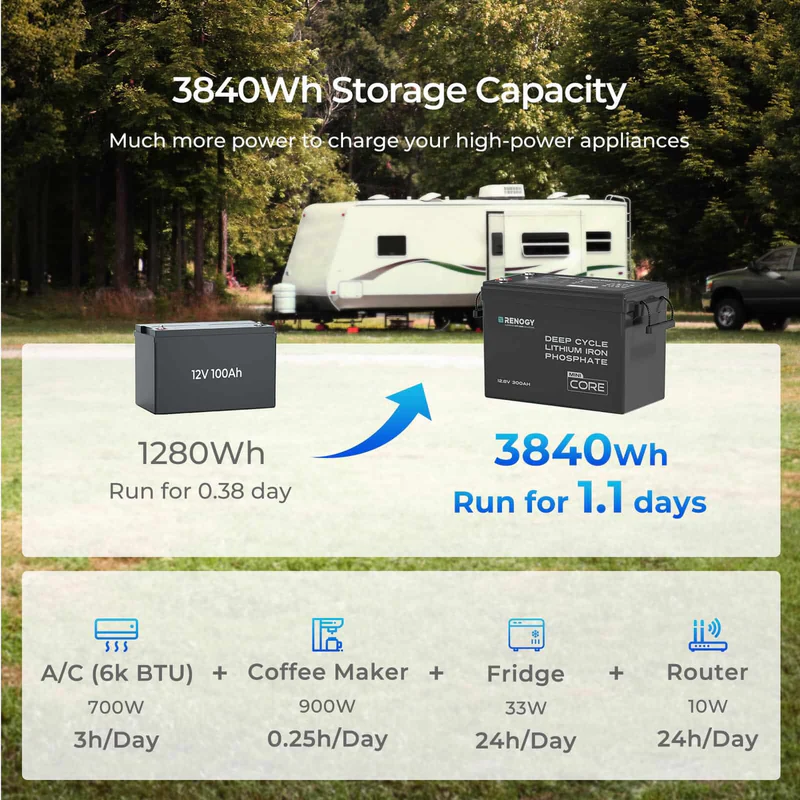 • Pro – Renogy 12V 200Ah Smart LiFePO4 Battery w Bluetooth & Self-Heating